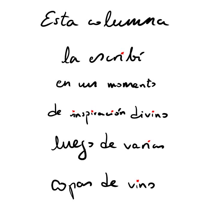 He creado poemas hermosos que nacieron en mi mente de la nada y que yo tenía “la obligación” de escribir de un tirón en un cuaderno con mi pluma fuente con buena música una vez acabada la botella de vino.