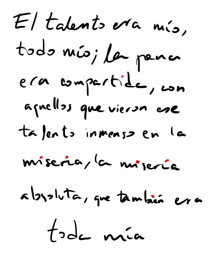 El talento era mío, todo mío; la pena era compartida, con aquellos que vieron ese talento inmenso en la miseria, la miseria absoluta, que también era toda mía.